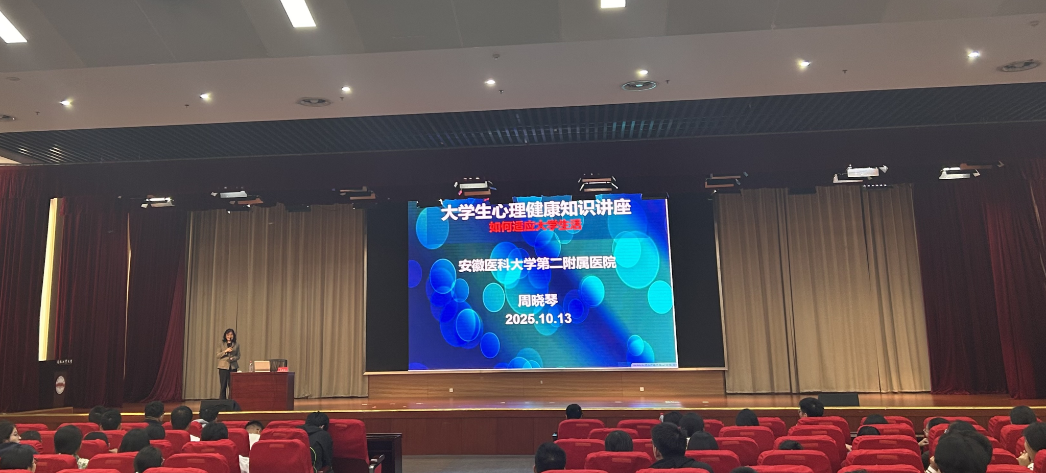 10月13日晚,材料科学与工程学院在翡翠科教楼二楼大报告厅开展大学生心理健康知识讲座。安徽医科大学第二附属医院周晓琴主任应邀作报告。材料学院全体2025级同学参加。
