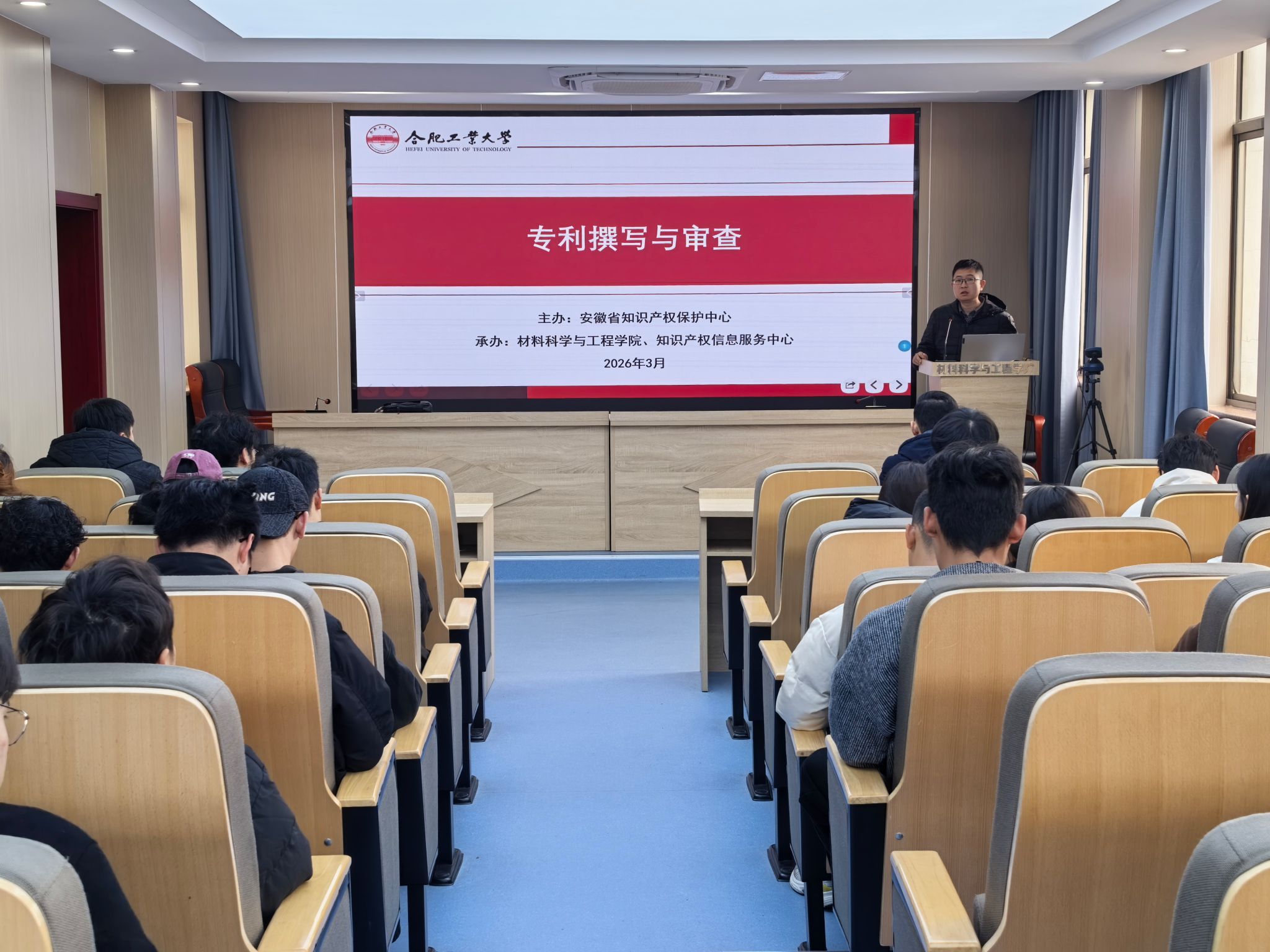 3月20日上午,材料学院联合合肥工业大学图书馆(知识产权信息服务中心)、安徽省知识产权保护中心,在屯溪路校区材料楼601报告厅举办知识产权科普公益专题讲座,本次讲座由合肥工业大学图书馆李昊主持,共计60名研究生参与。