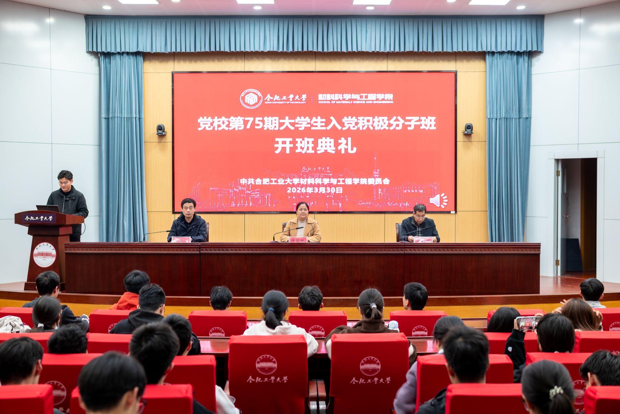 3月30日晚,材料科学与工程学院分党校第75期大学生入党积极分子培训班开班仪式暨首次主题党课于学术会议中心一楼报告厅举行。学院党委、分党校相关负责人出席,全体学员参加仪式。