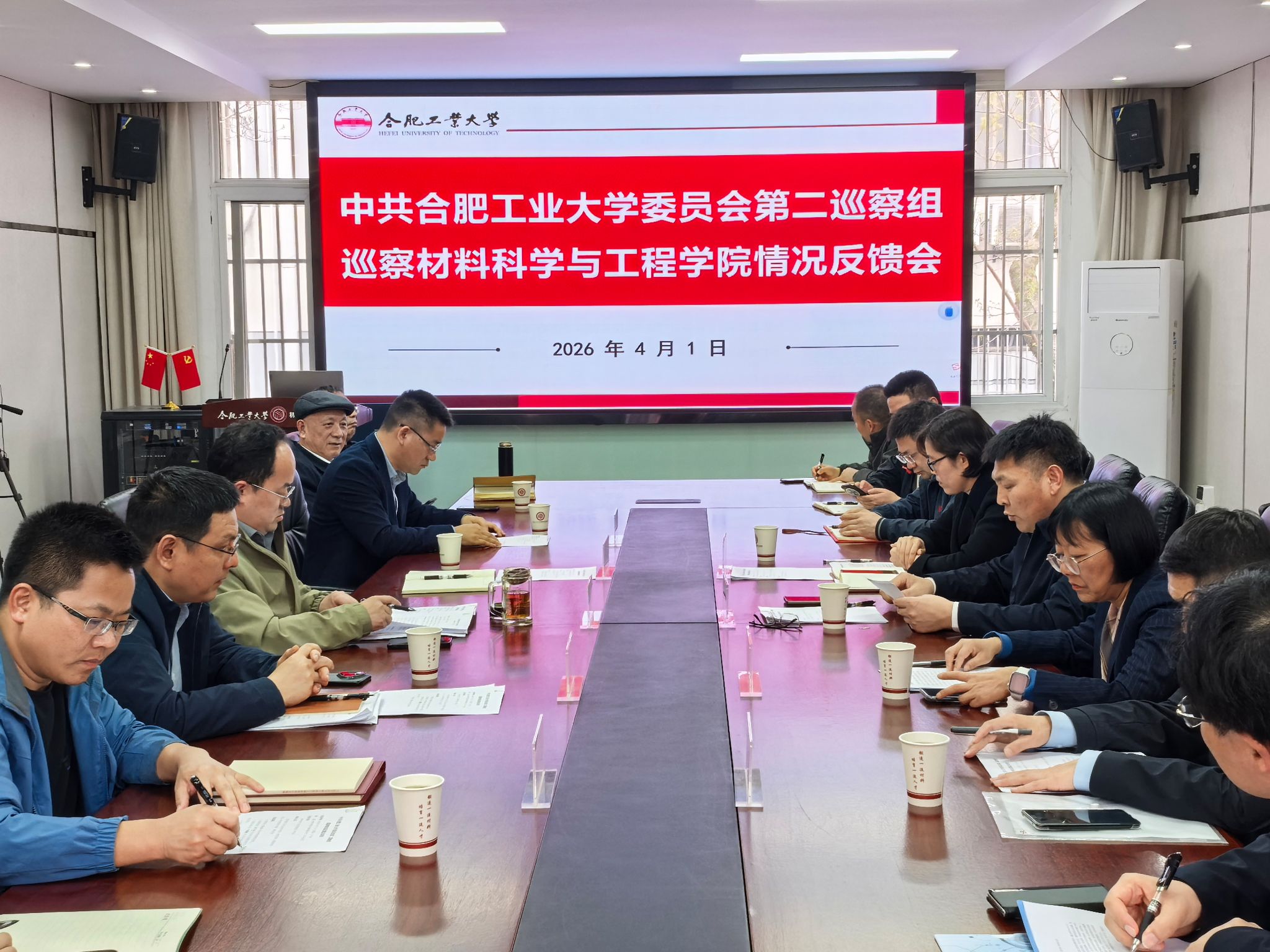2026年4月1日下午,中共合肥工业大学委员会第二巡察组巡察材料科学与工程学院党委情况反馈会在材料学院综合事务服务中心210会议室召开。校党委第二巡察组有关同志、巡察办负责同志、学院领导班子和师生代表参加会议。会议由材料科学与工程学院院长罗来马主持。