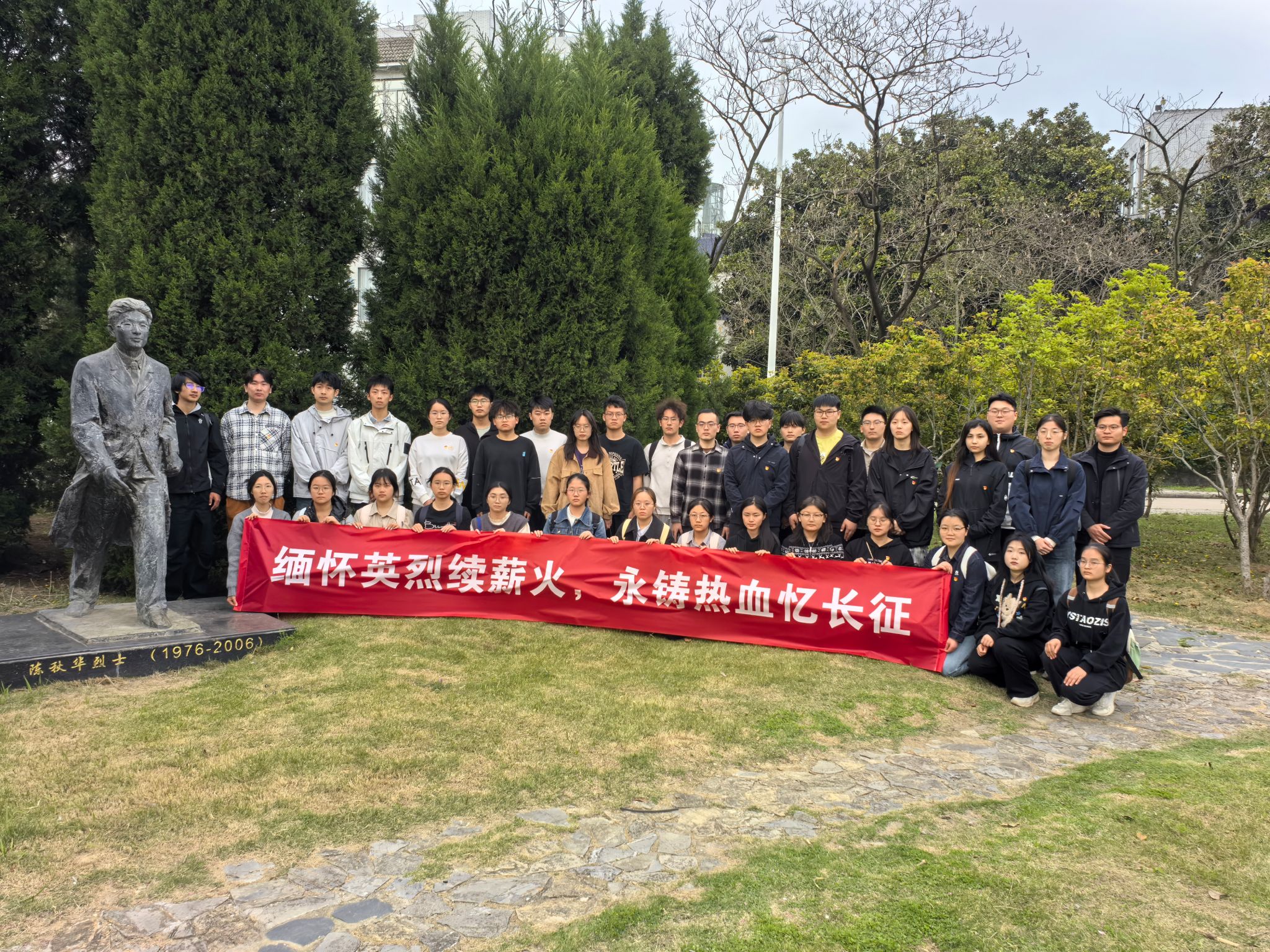 4月7日,全国“样板支部”、材料学院本科生第二党支部联合校“五老”报告团,在翡翠湖校区陈秋华烈士纪念碑前举行“缅怀英烈续薪火,永铸热血忆长征”主题活动。校关工委常务副主任王皖江、电气与自动化工程学院原院长张崇巍、“五老”报告团成员兼银龄教师李晓玲,以及全国“样板支部”、材料学院本科生第二党支部全体毕业年级党员和入党积极分子参与本次活动。